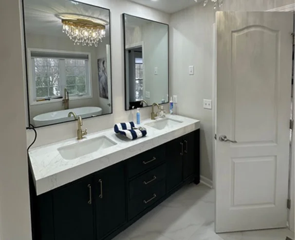 Stylish, durable bathroom cabinetry and custom vanities designed to improve organization while complementing the overall space.