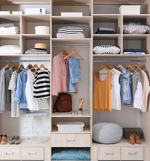Custom organizational solutions designed to maximize storage and everyday functionality using high-quality materials and tailored layouts.