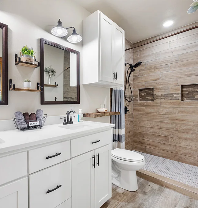 Stylish, durable bathroom cabinetry and custom vanities designed to improve organization while complementing the overall space.